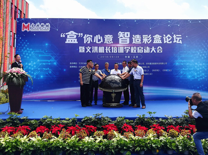 8月28日,位于江蘇省南通蘇通科技產業園的文洪機械(江蘇)廠區內,藍天白云,彩旗飄展,來自全國有關協會領導、業內專家、包裝印刷企業精英人士,共同參加由文洪印刷機械股份有限公司主辦,深圳嘉洛智能科技有限公司協辦的“盒”你心意 智造彩盒論壇暨文洪機長培訓學校啟動大會。