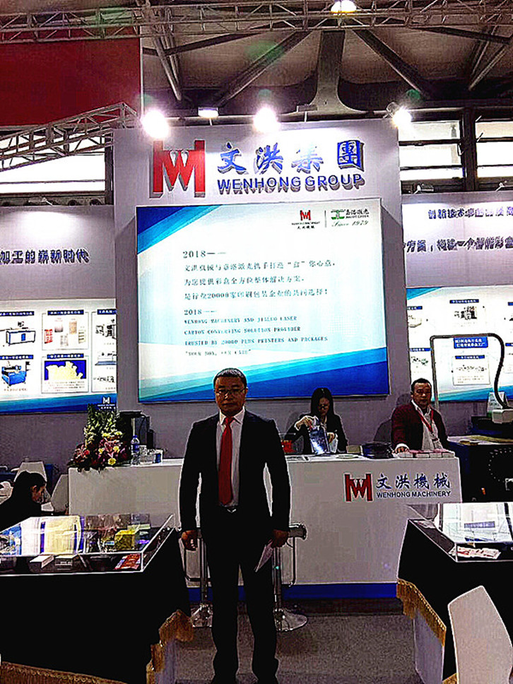 “用一個模式,開啟紙盒模切加工的嶄新時代”;“用一個方案,構建一個智能彩盒工廠” 。“行業20000家印刷包裝企業的共同選擇!”走到N4館B429號展位,背景板上中央及兩側燈箱廣告詞裝點醒目,昭昭揭示出嘉洛與文洪兩家公司的宏圖妙思。